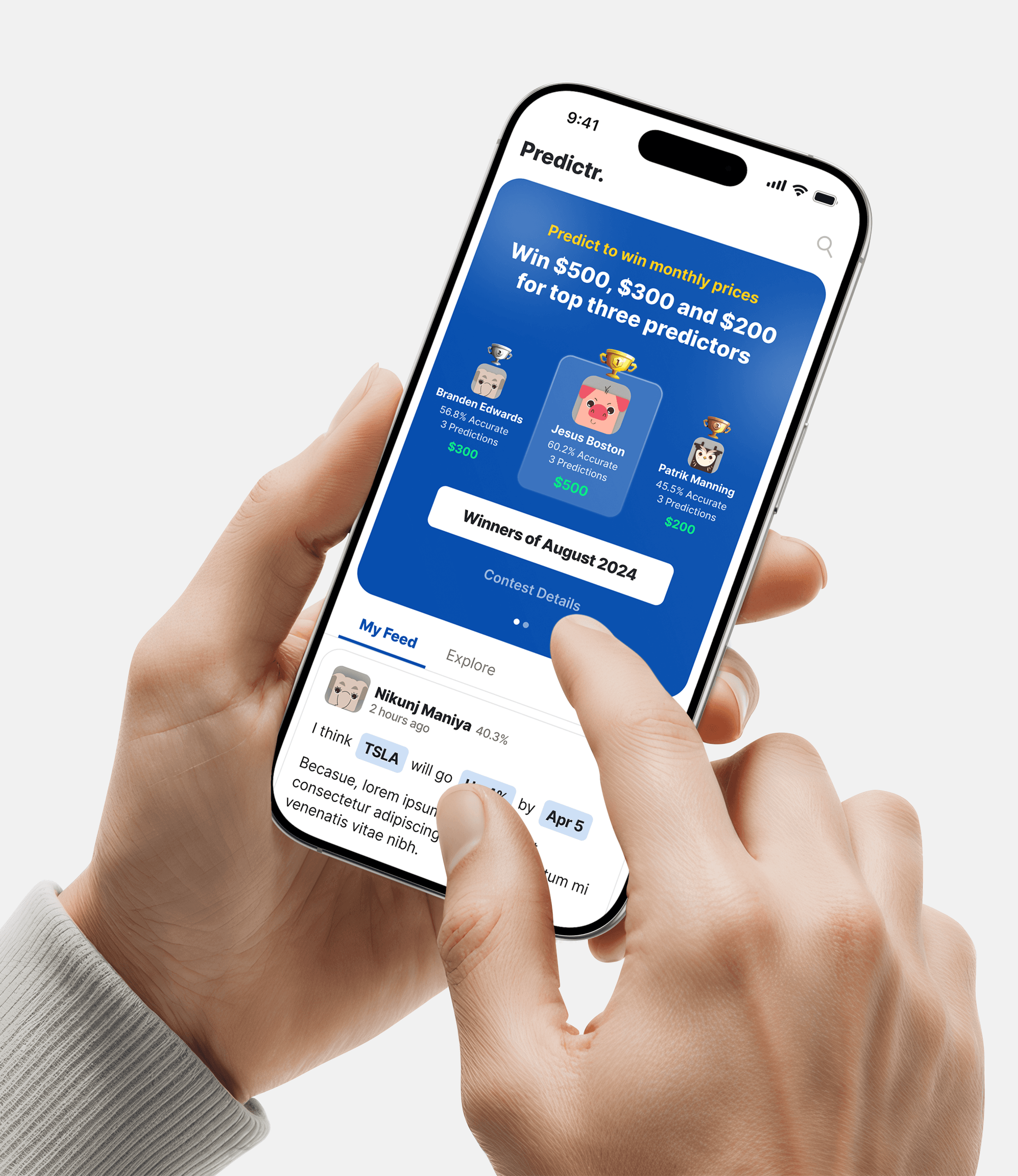 We designed Predictr, a mobile-first app that turns market learning into an engaging experience through stock predictions and accuracy tracking.